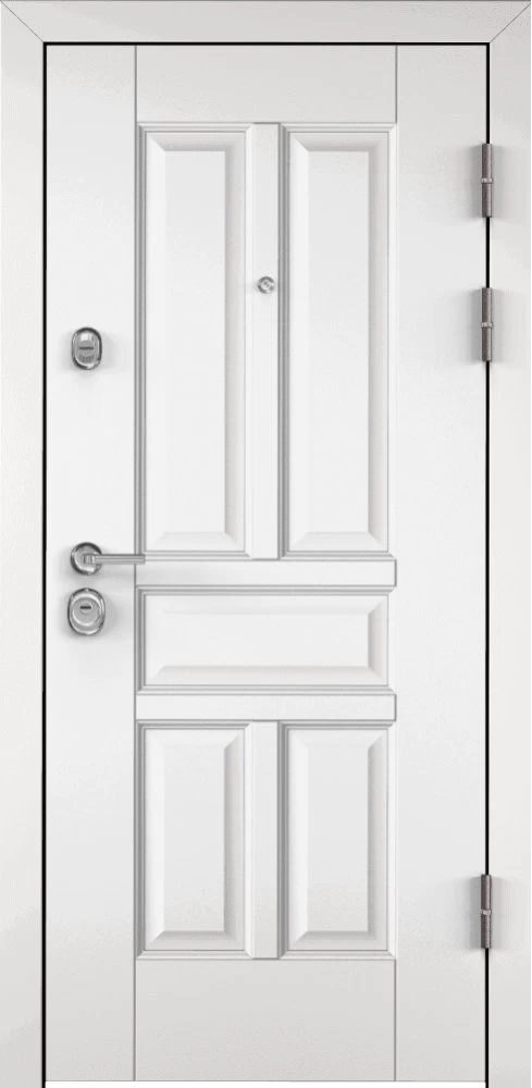 Надежная входная Дверь Цербер 3К Чёрный муар Мистраль Белый Сменная панель премиум класса по цене 42 463 руб. Большая толщина стали защитит от проникновения в ваш дом, квартиру или коттедж. Используется очень качественная фурнитура: замки, цилиндры, ручки, защелки. Покрытие и отделка двери изготовлено под внимательным контролем производителя. Дверь имеет долгий срок службы и гарантию.